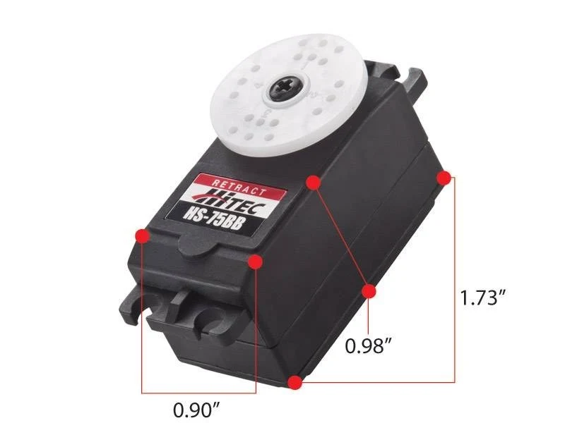 With its low profile design, strong torque and precision movement, the HS-75BB is a great choice to move your retract gear in a realistic manner that you need. Note, this is a retract or “bang bang” servo and only travels from one end to the other (180 degrees.) If you require a proportional servo this size, use the Hitec HS-77BB.